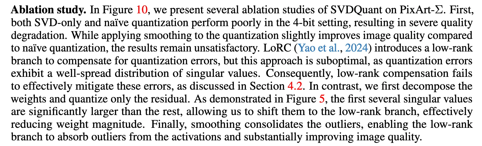 - 예를 들어 “SVDQuant에서 SVD를 안 쓰면 성능이 어떻게 되지?” 같은 실험.