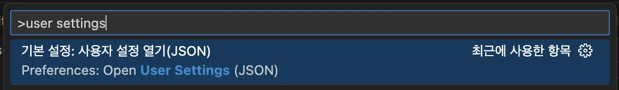 crtl(cmd)+shift+P 후 user setting을 검색해서 JSON을 클릭하면 된다.