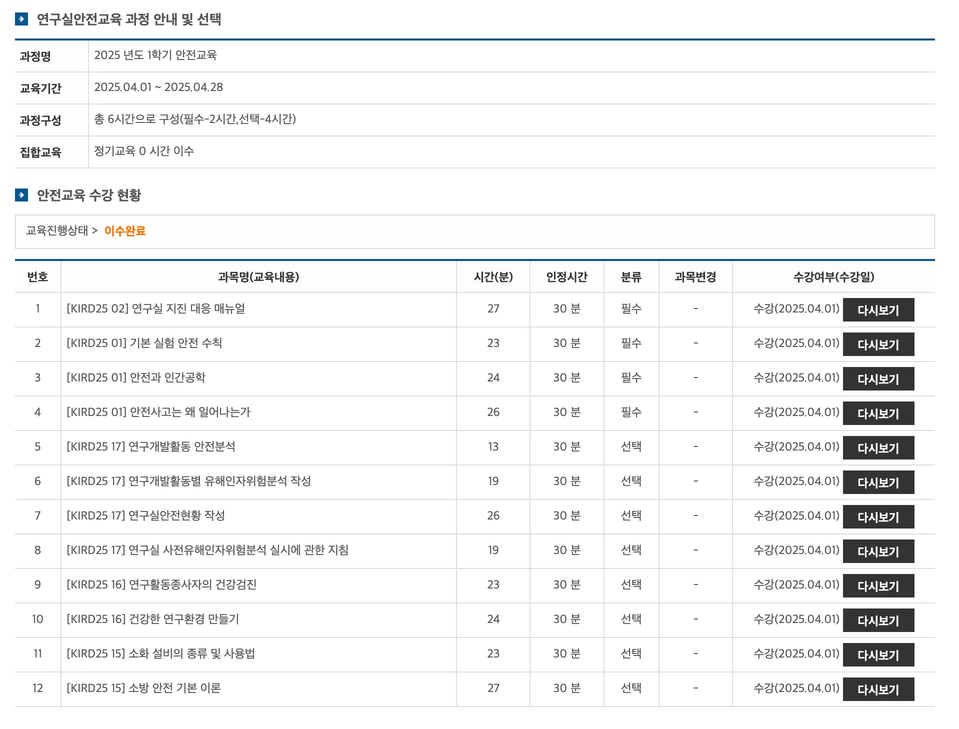 국가 돈낭비 중 하나인 연구실 안전교육을 아마 매학기 해야하는데 정말 귀찮다.