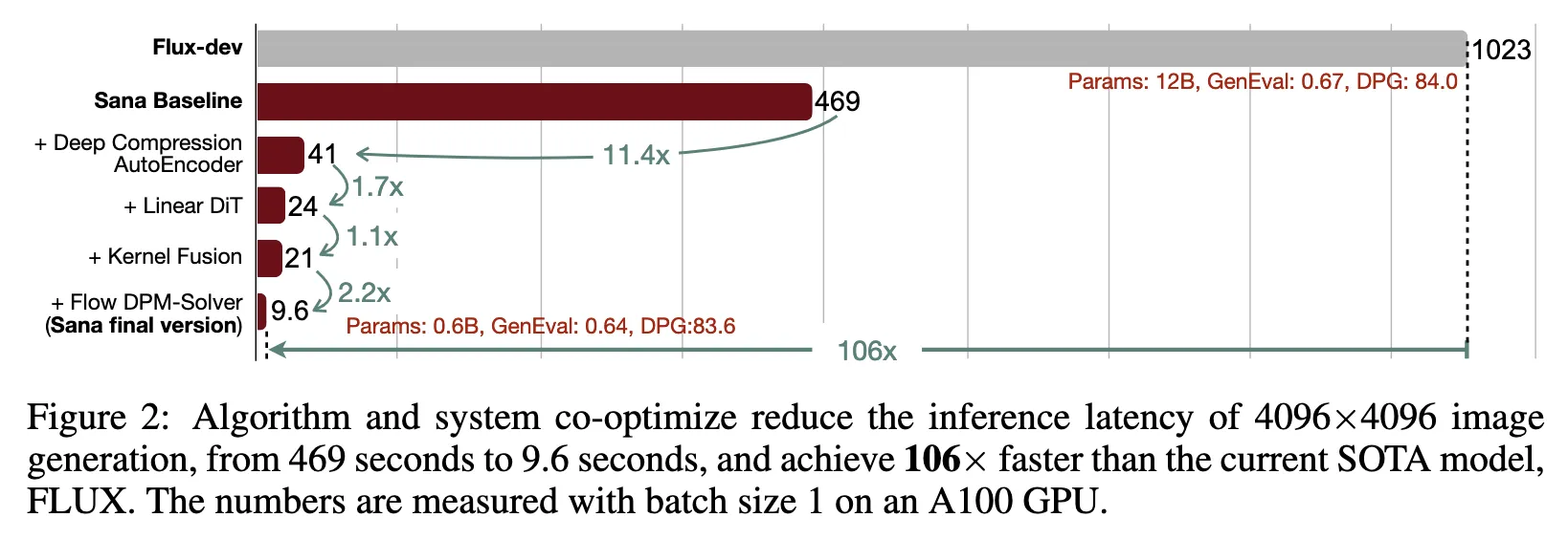 - Deep Compression Autoencoder→ 이로 인한 32배 압축 가능으로 연산도 빨라짐