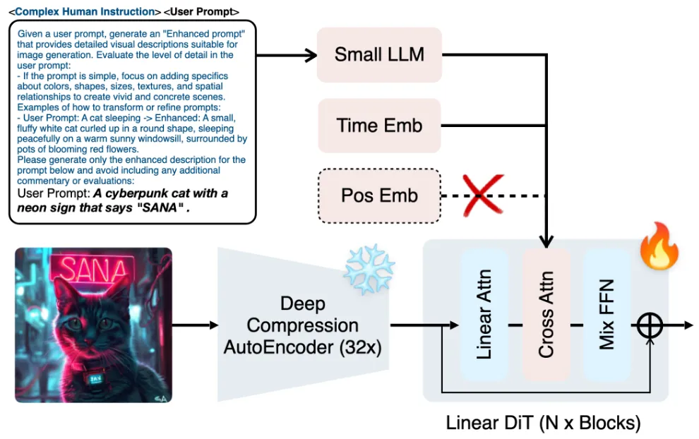 - Efficient Linear DiT designReLU 기반 Linear Attention 도입