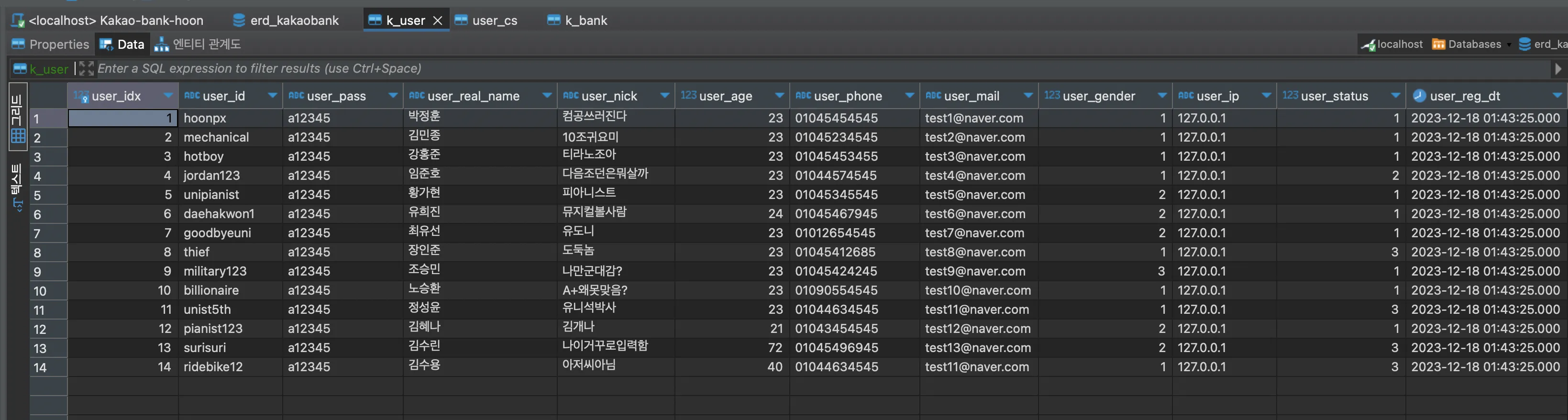 ❗ k_user (유저 정보) insert